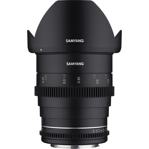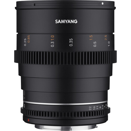 Update your cinema lens set with this 24mm T1.5 VDSLR MK2 Cine Lens from Samyang that comes in a Canon RF mount. The VDSLR MK2 continues the line with the same multilayer coating process, industry-standard geared focus and iris rings, and fast T1.5 aperture, and it adds a 9-blade iris for beautiful soft bokeh, weather sealing to keep the moisture out, and focal lengths on both sides for added versatility for focus pullers.